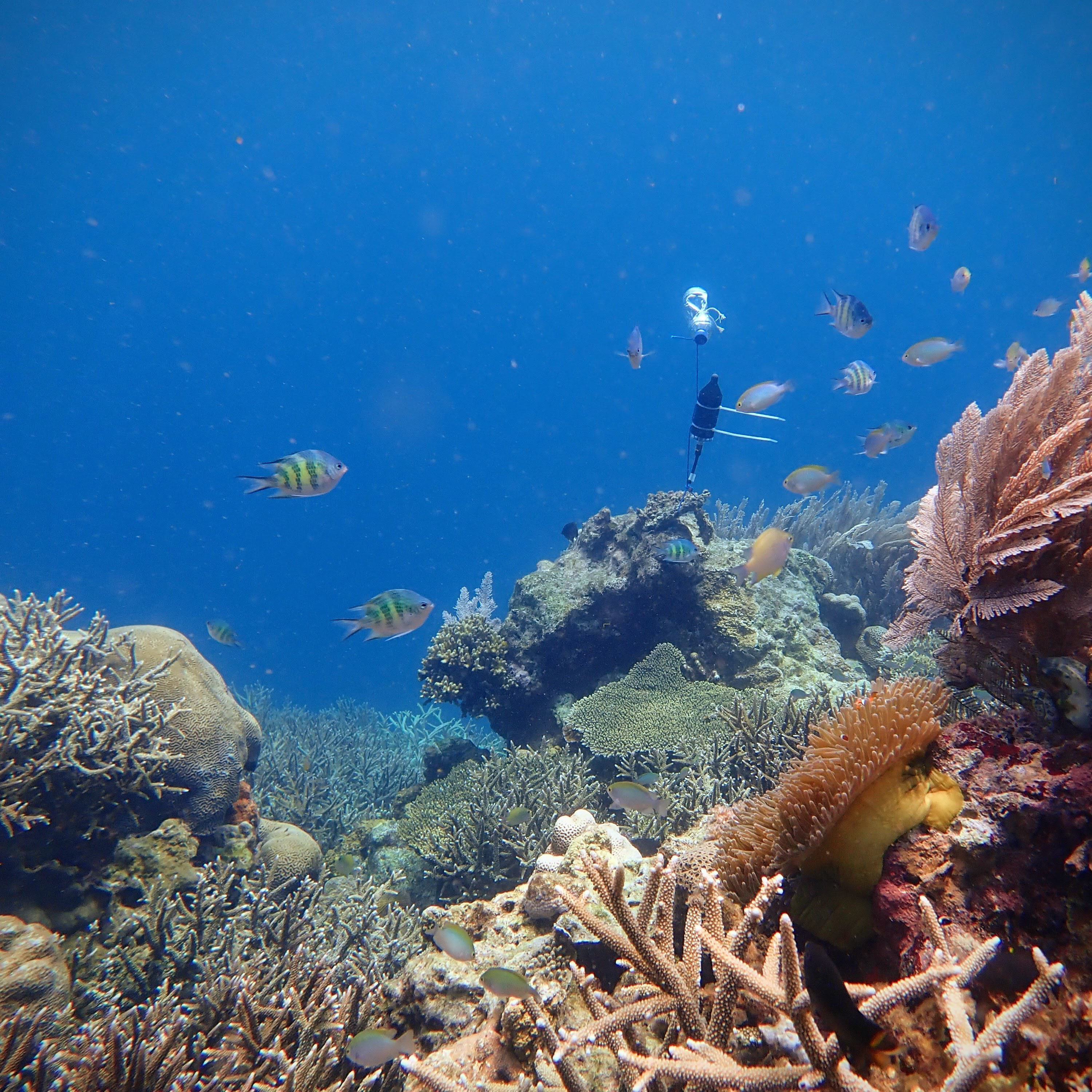 A hydrophone recording the sounds of a coral reef in Indonesia