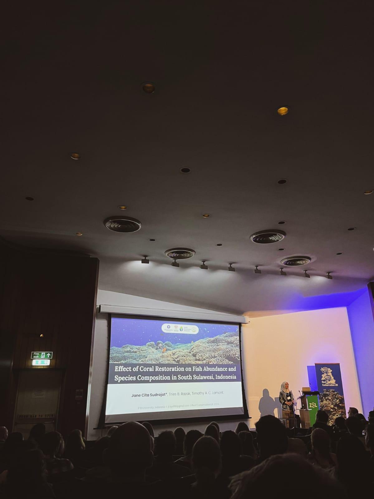 Sheba-supported Indonesian postgraduate students Maserati (Padjadjaran University) and Jane Cita (IPB University) have been carrying out ecological research on the Mars coral restoration programme as part of their Masters degrees. They recently gained invaluable experience by attending two prestigious international conferences: the Reef Conservation UK (RCUK) Annual Meeting in London on 29th November 2024, and the British Ecological Society (BES) Annual Meeting from 10th to 13th December 2024. These conferences provided them with opportunities to enhance their ongoing research in distinct areas—Maserati focuses on fish behaviour, while Jane specializes in fish community development.
