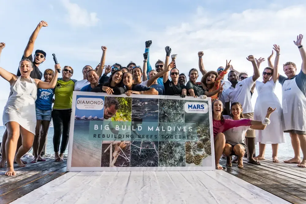 Can we help save coral reefs? Yes, if we take collective action! In October 2024, Diamonds Thudufushi and Mars, Inc., embarked on a bold mission: the Big Build Maldives, a week-long project that installed over 1,000 reef stars, out planting+15,000 corals on the island’s reef to revive one of nature’s most precious ecosystems. The initiative was driven by a powerful partnership of visionary leaders, marine scientists and an army of enthusiastic local and visiting volunteers. Determined to help coral reefs recover and adapt after a record-breaking year of globally warming oceans, the dedicated team accomplished one of the largest restoration efforts seen to date.